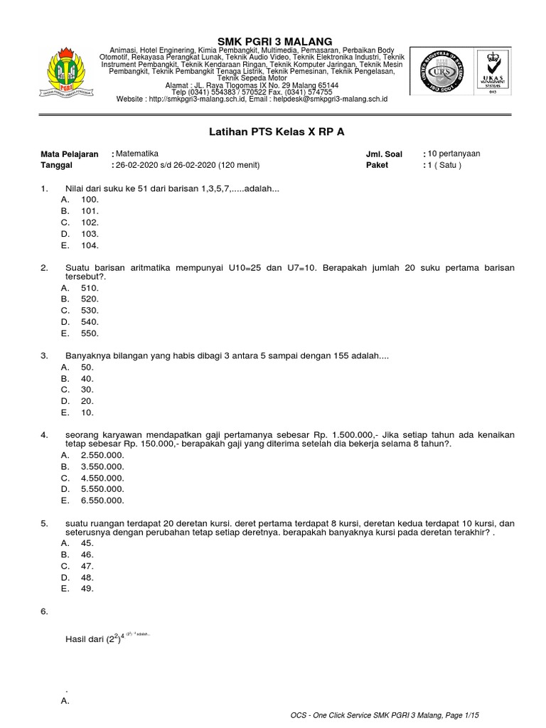 Seleksi Siswa Baru Jalur Reguler 2020 Smk Pgri 3 Malang from smkpgri3-malang.sch.id Check spelling or type a new query. Maybe you would like to learn more about one of these? We did not find results for: Ocs smk pgri 3 malang.